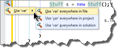 Incidently, JetBrains Resharper suggests using “var” with variable declarations by default.